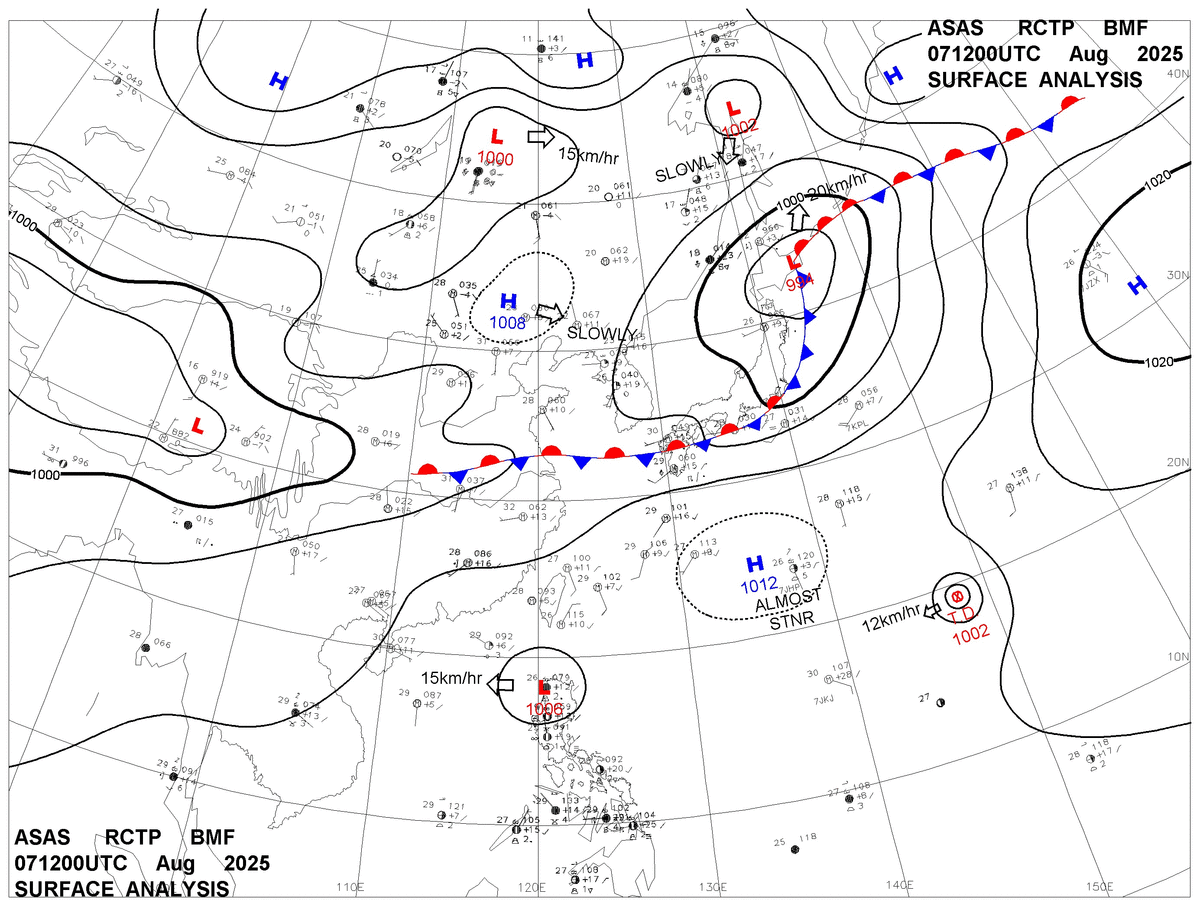 2025/08/07 12z sfcmap 天氣圖