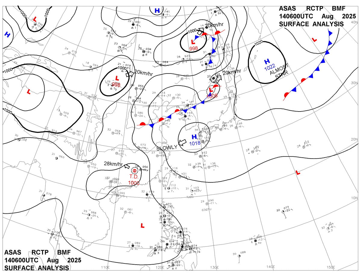2025/08/14 06z sfcmap 天氣圖