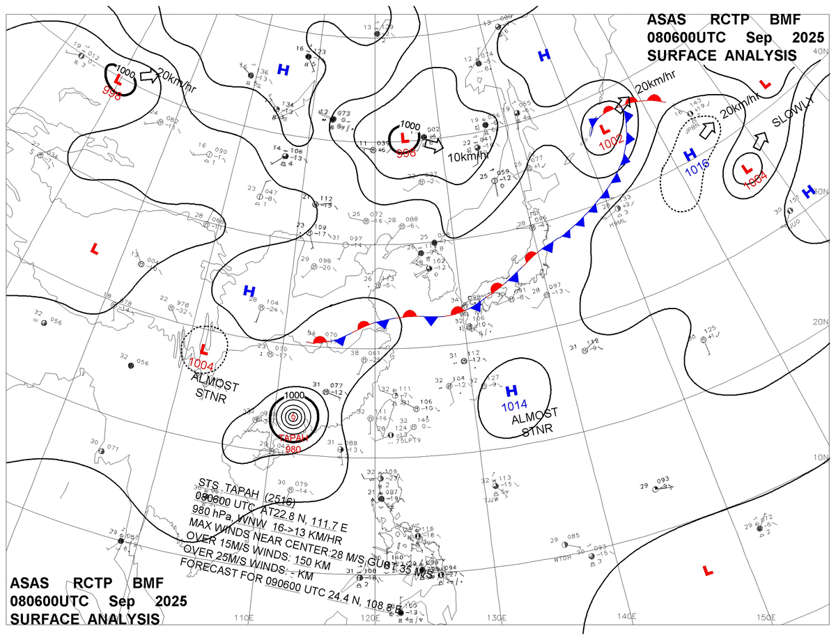 2025/09/08 06z sfcmap 天氣圖