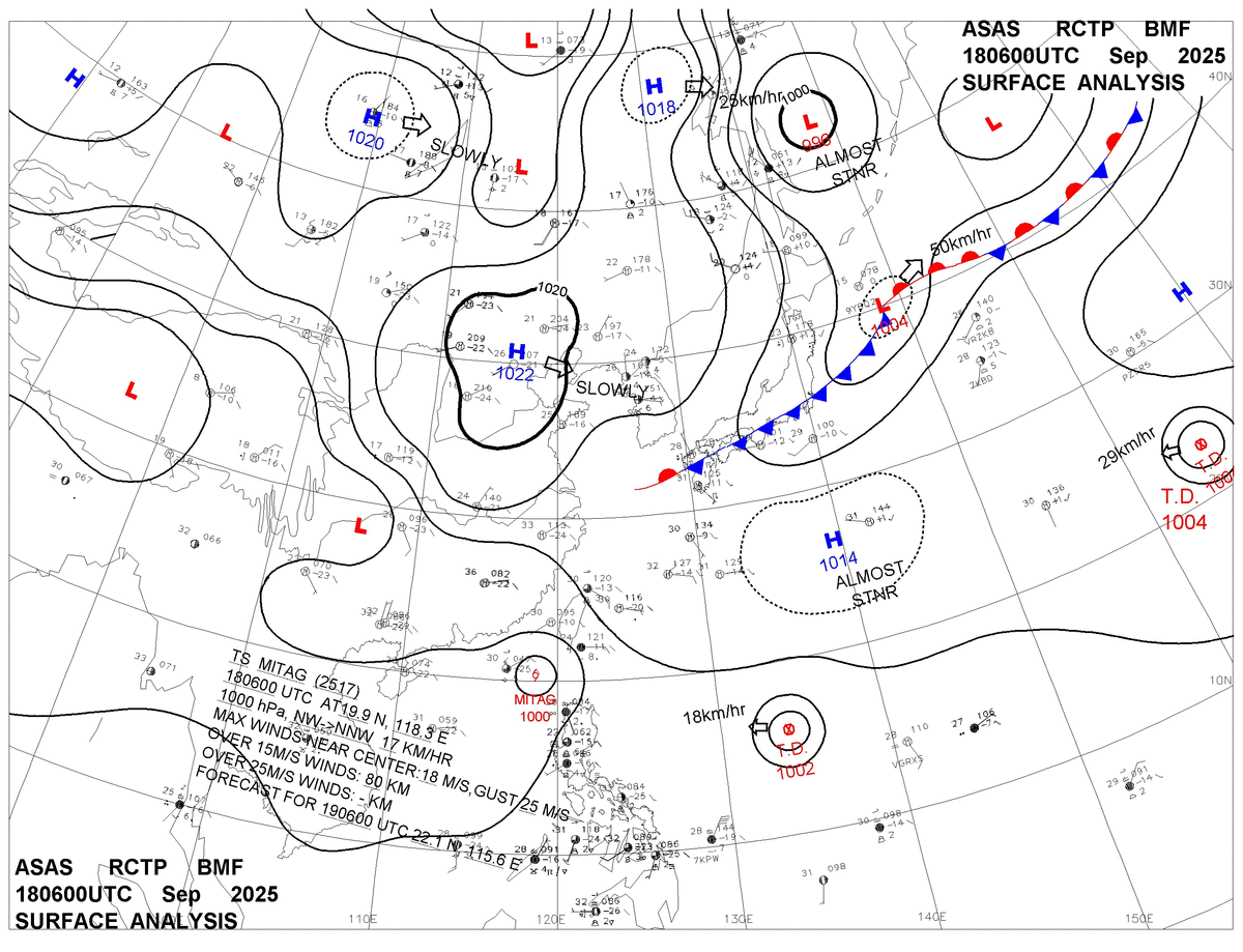 2025/09/18 06z sfcmap 天氣圖