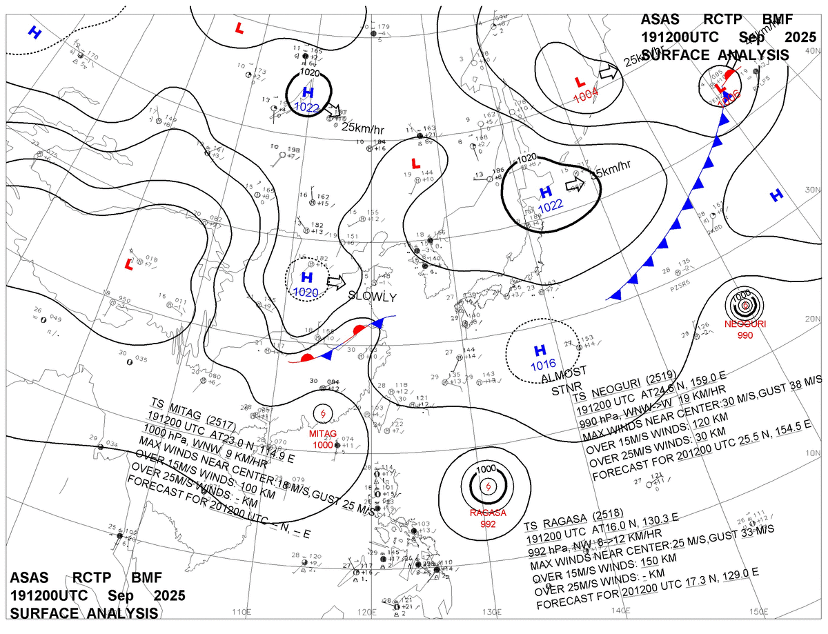 2025/09/19 12z sfcmap 天氣圖