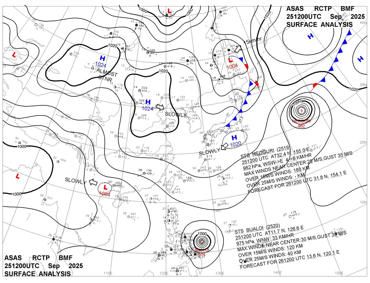2025/09/25 12z sfcmap 天氣圖