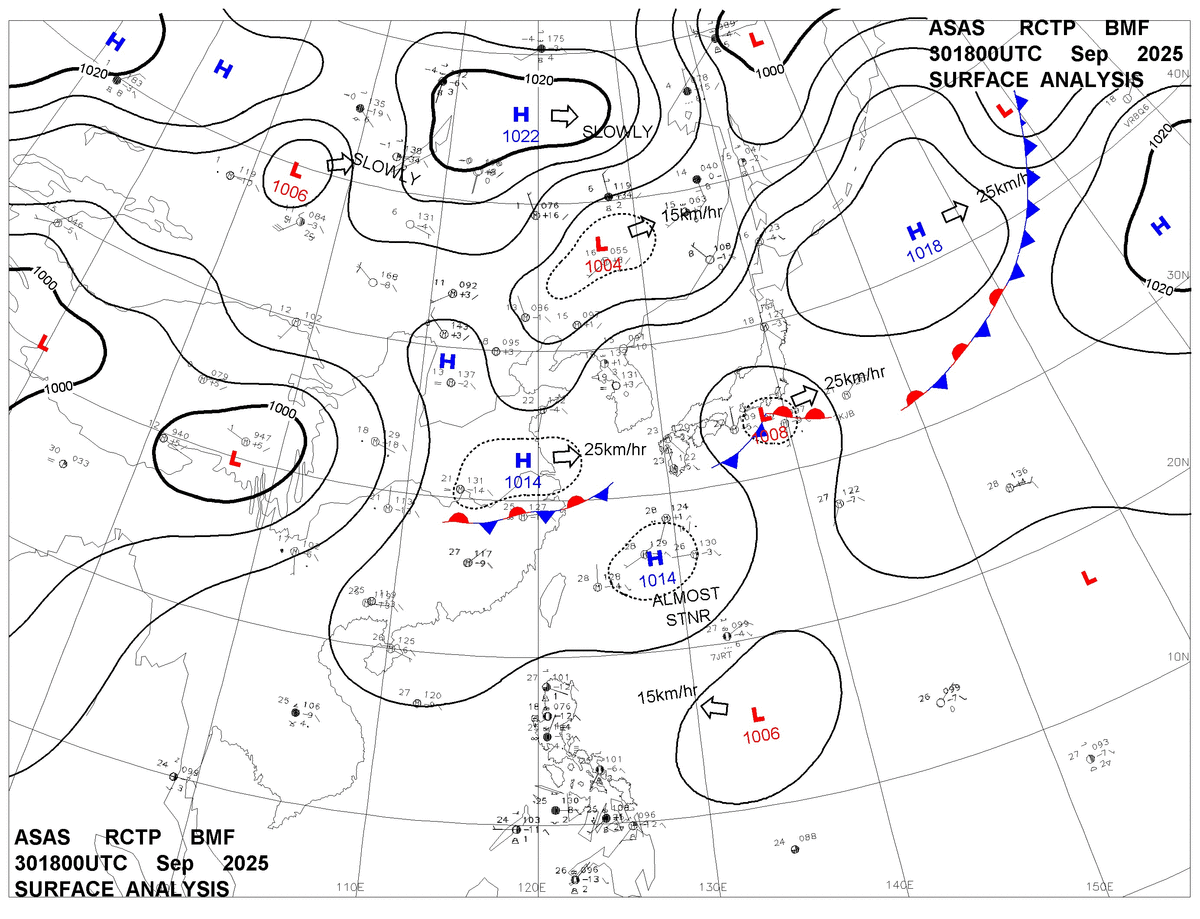 2025/09/30 18z sfcmap 天氣圖