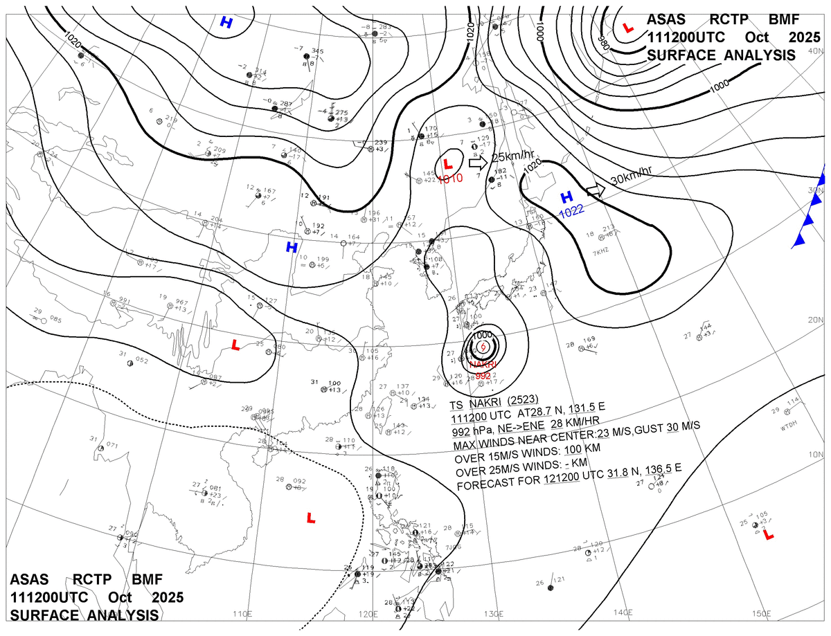 2025/10/11 12z sfcmap 天氣圖