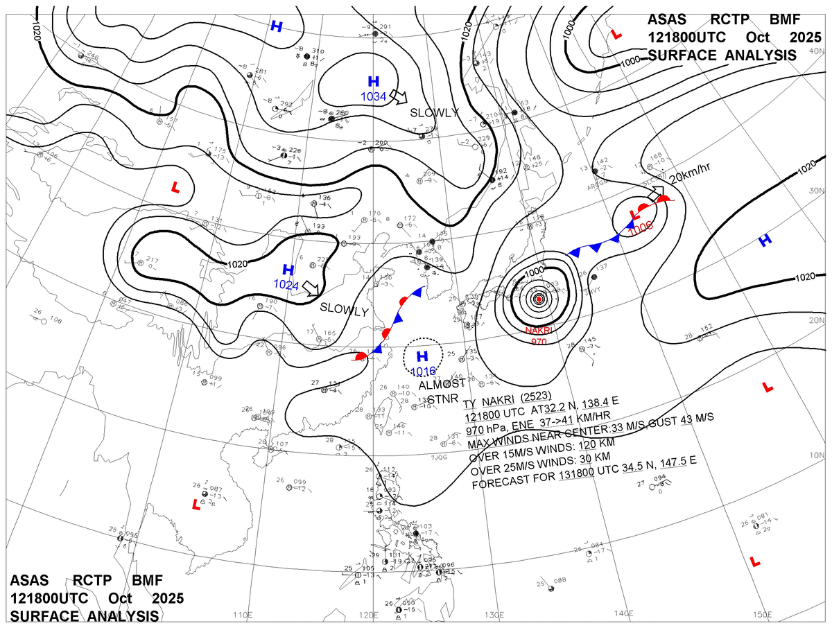 2025/10/12 18z sfcmap 天氣圖