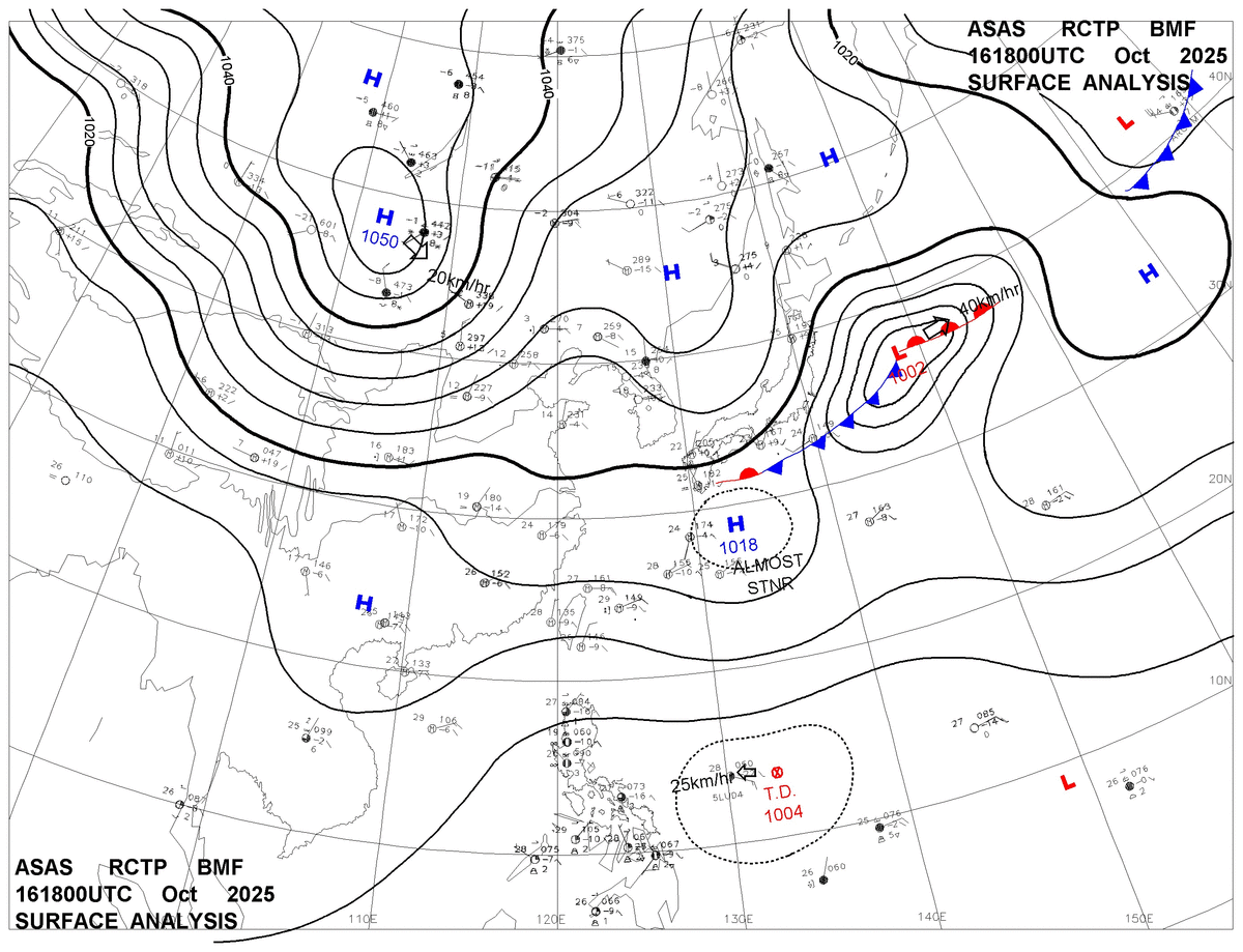 2025/10/16 18z sfcmap 天氣圖
