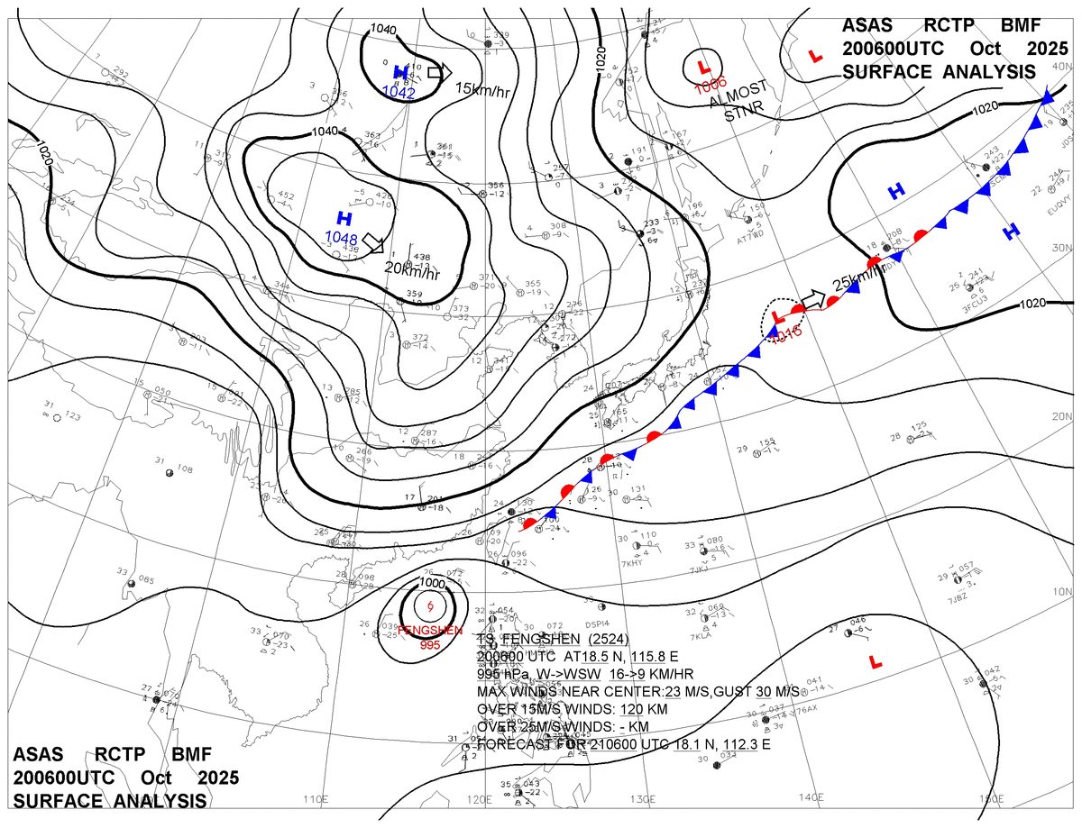 2025/10/20 06z sfcmap 天氣圖