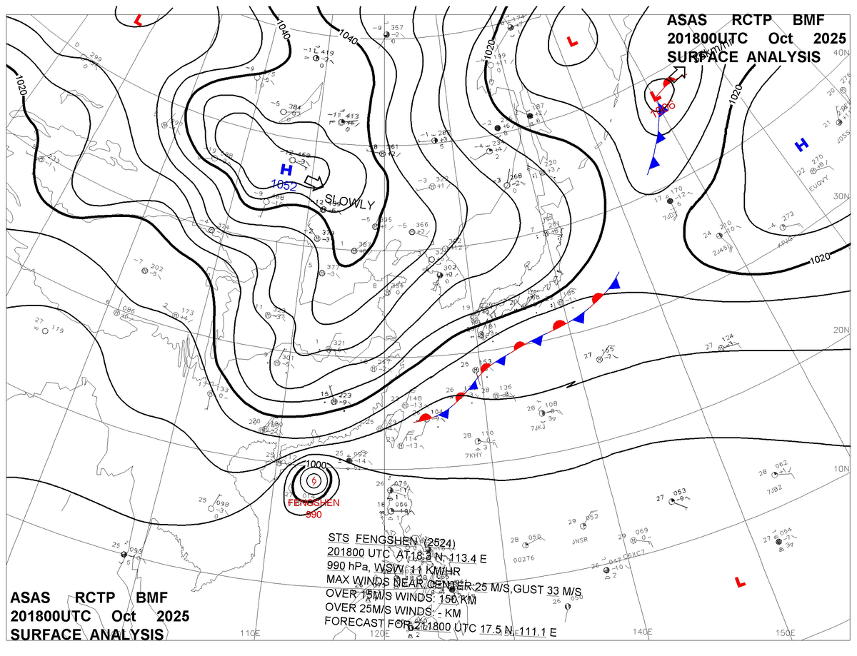 2025/10/20 18z sfcmap 天氣圖