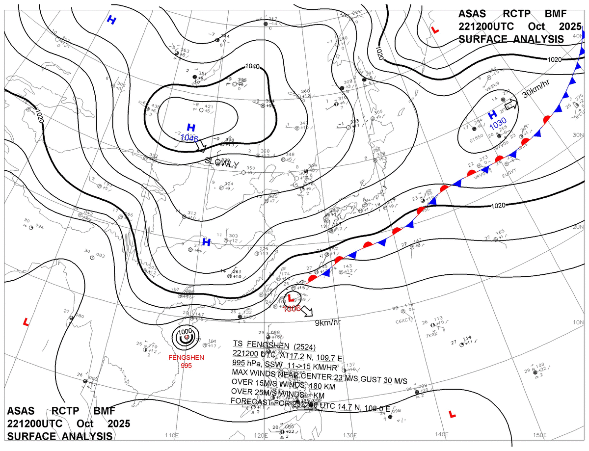 2025/10/22 12z sfcmap 天氣圖