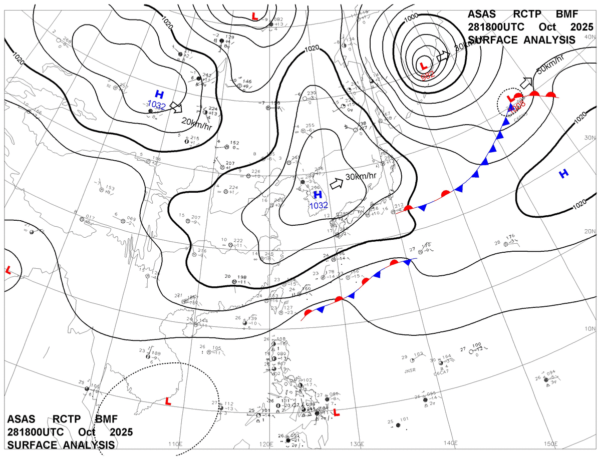 2025/10/28 18z sfcmap 天氣圖