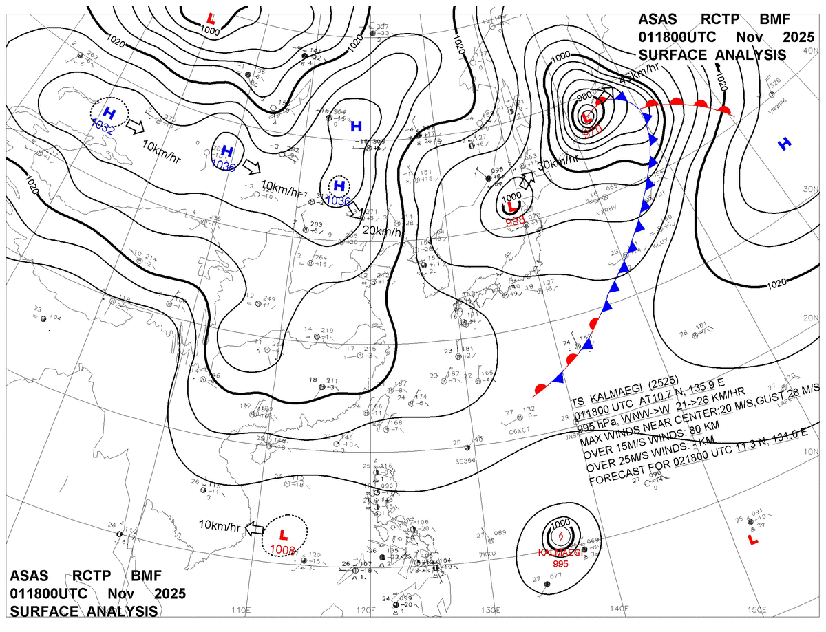 2025/11/01 18z sfcmap 天氣圖