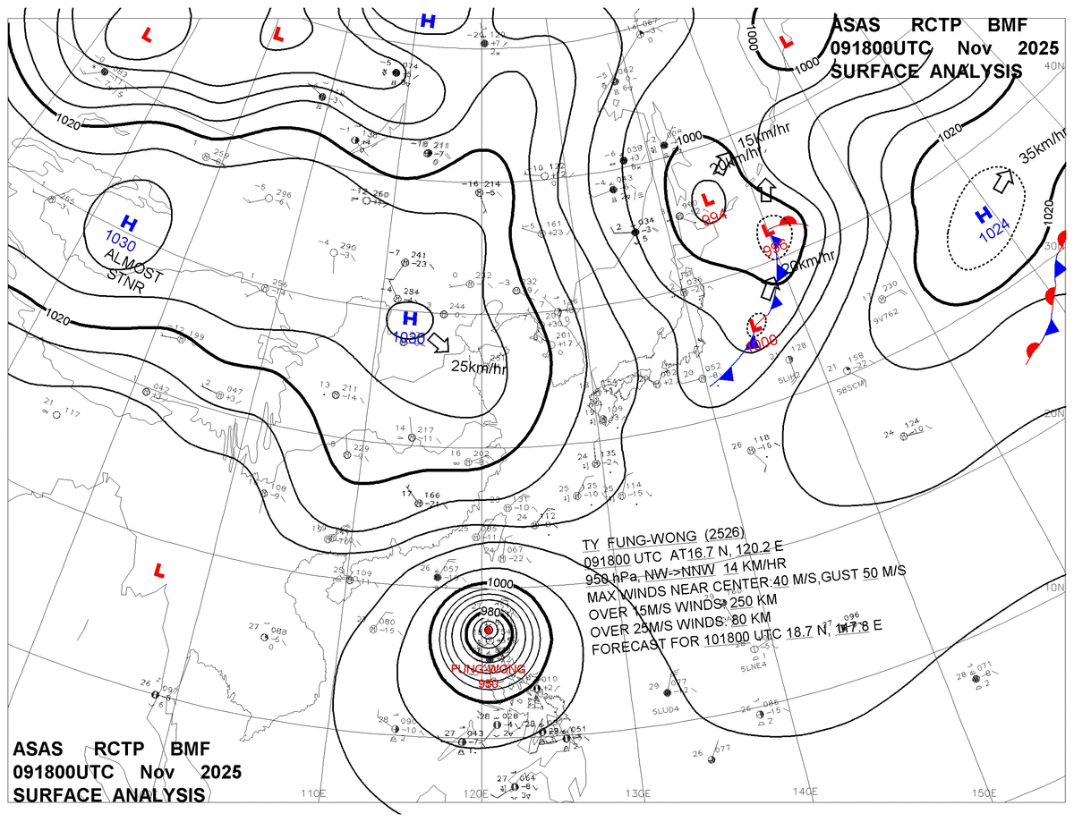 2025/11/09 18z sfcmap 天氣圖