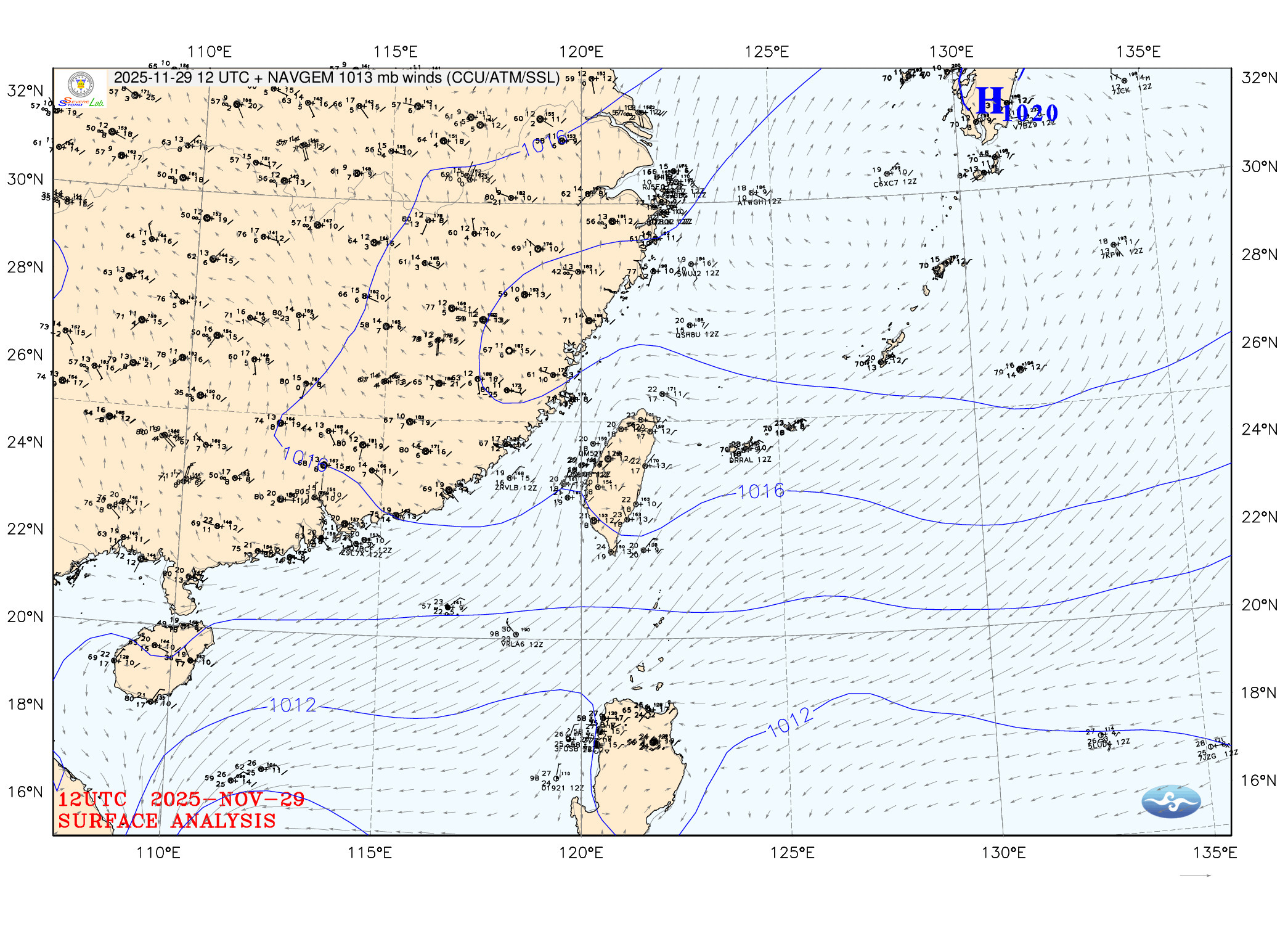 2025/11/29 12z twsfcw 天氣圖