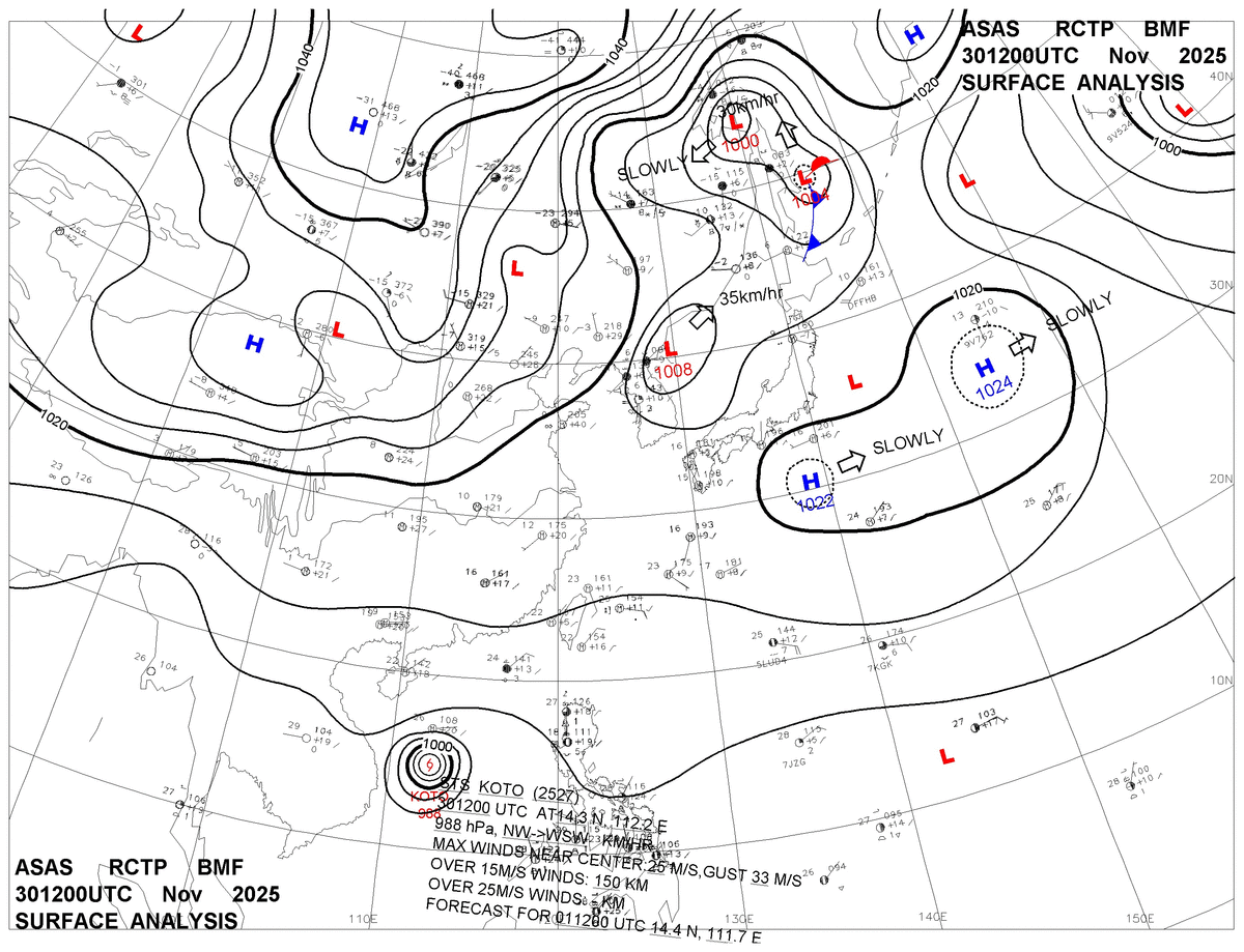 2025/11/30 12z sfcmap 天氣圖