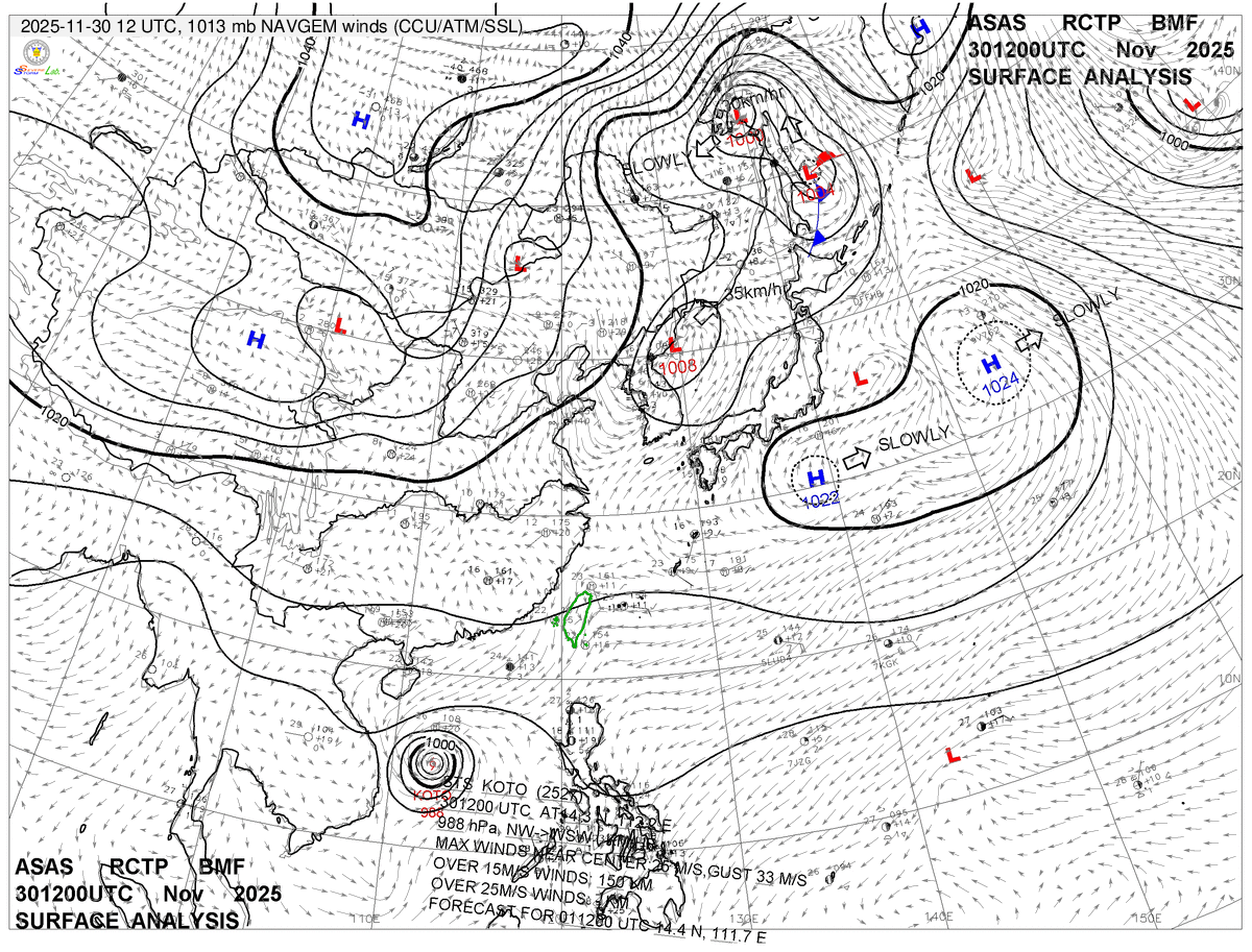 2025/11/30 12z sfcwnd 天氣圖