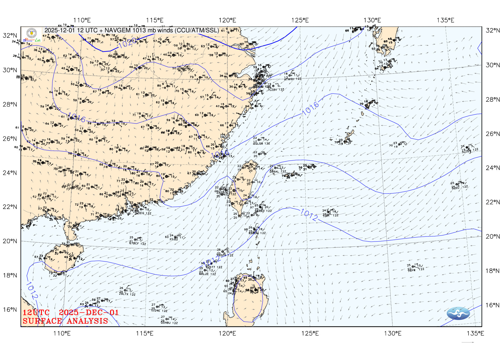 2025/12/01 12z twsfcw 天氣圖