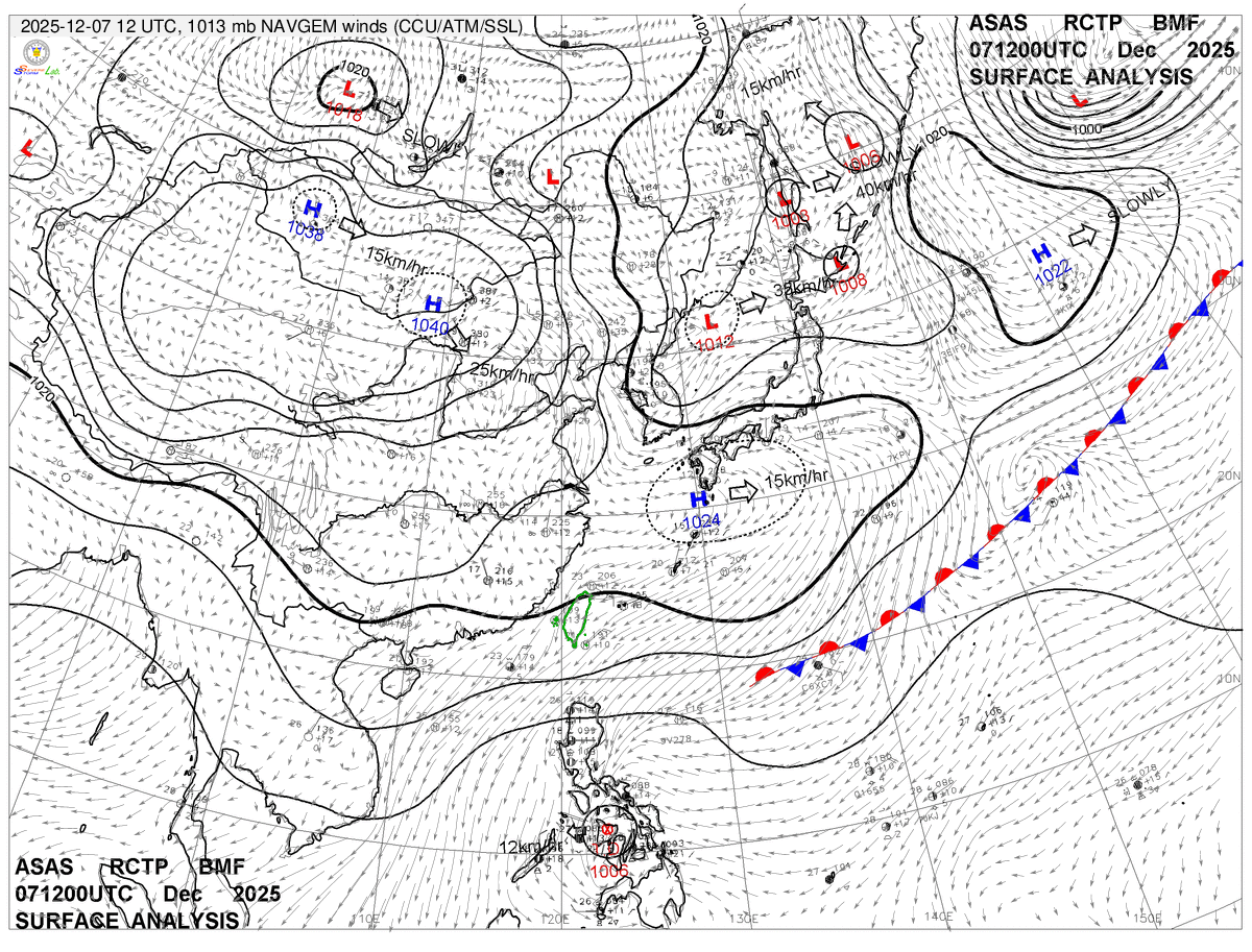 2025/12/07 12z sfcwnd 天氣圖