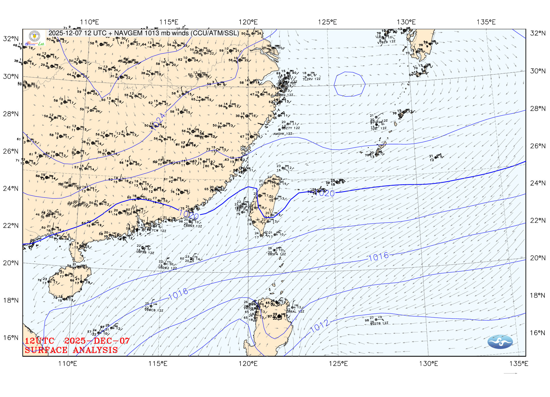 2025/12/07 12z twsfcw 天氣圖