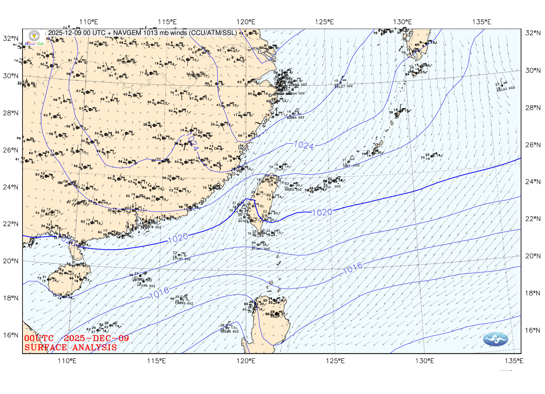 2025/12/09 00z twsfcw 天氣圖