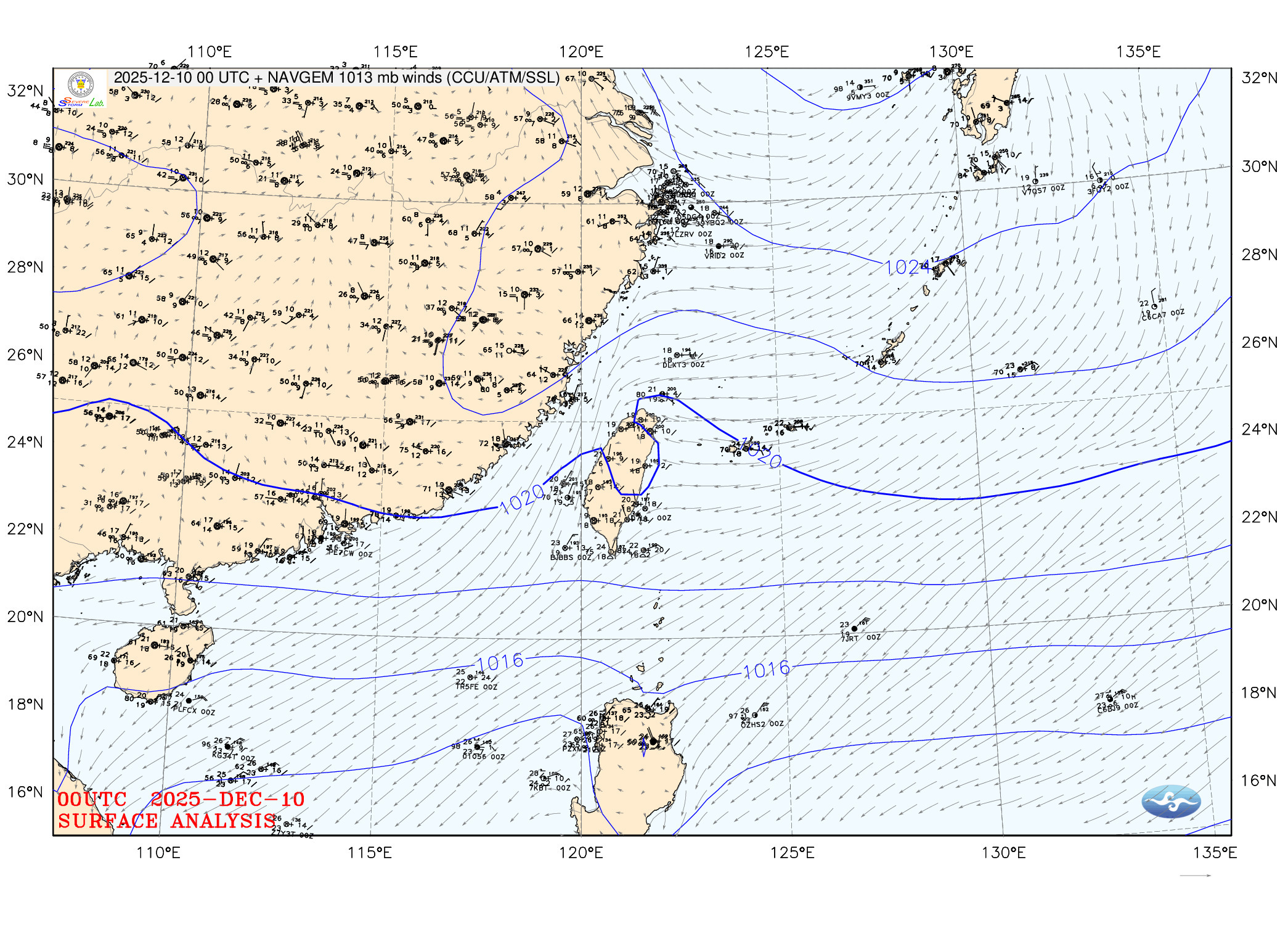 2025/12/10 00z twsfcw 天氣圖