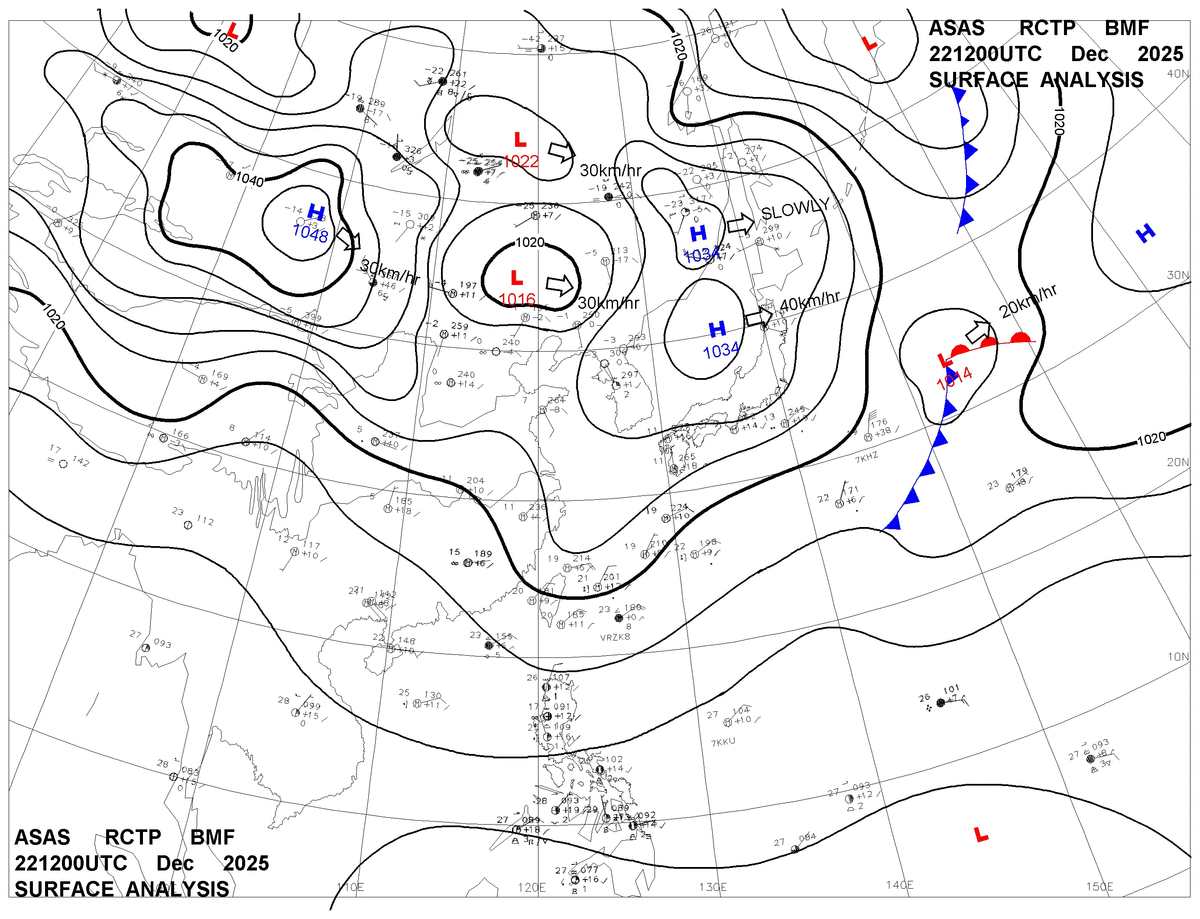 2025/12/22 12z sfcmap 天氣圖