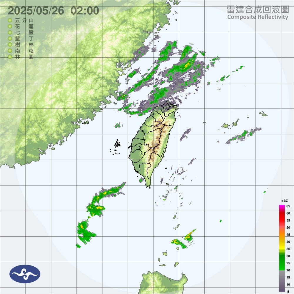 2025-05-26 CWA - 大範圍有地形 雷達(CV2)