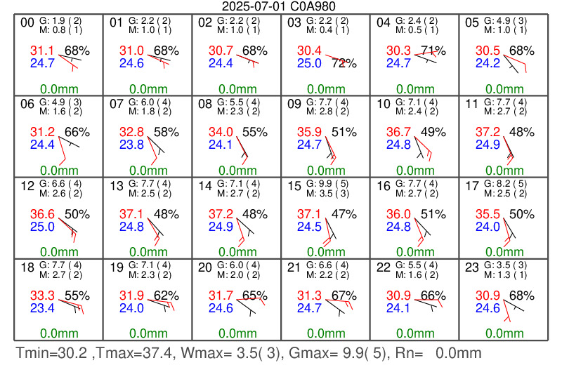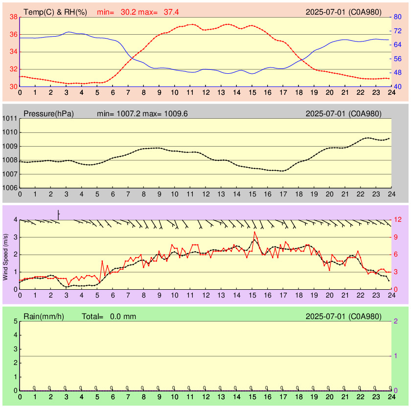 臺北社子 溫溼、氣壓、風速(m/s)、時雨量