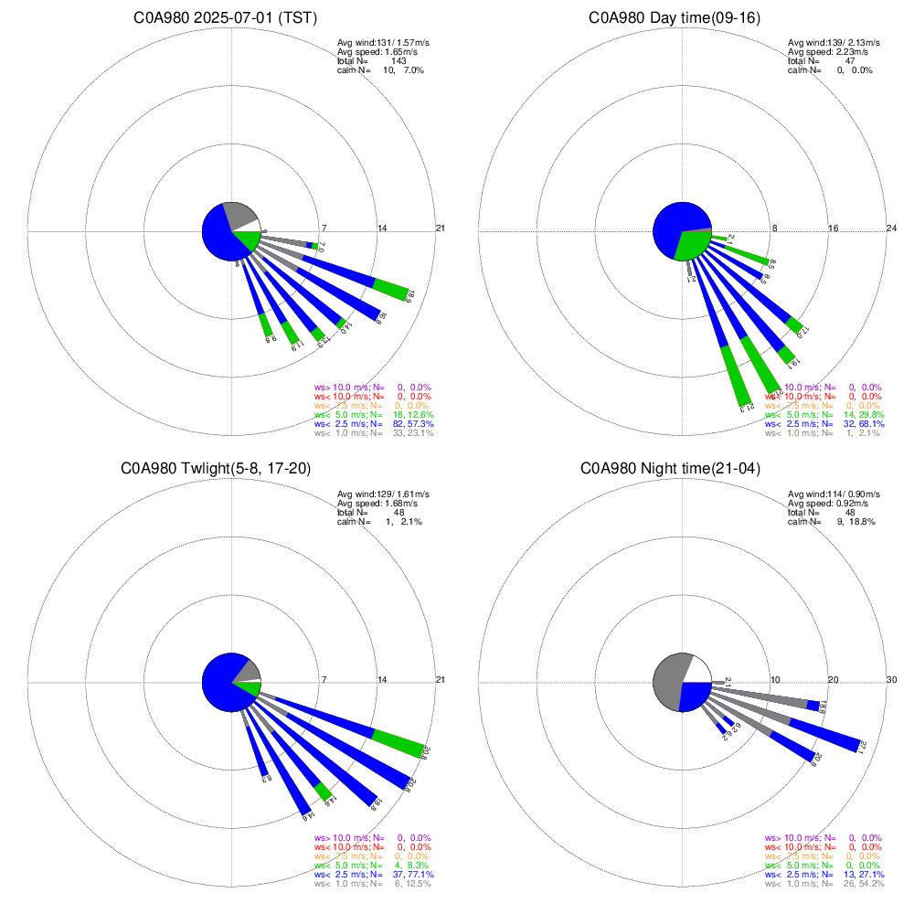 臺北社子 風花圖 (風向36方位頻率分布圖,%)