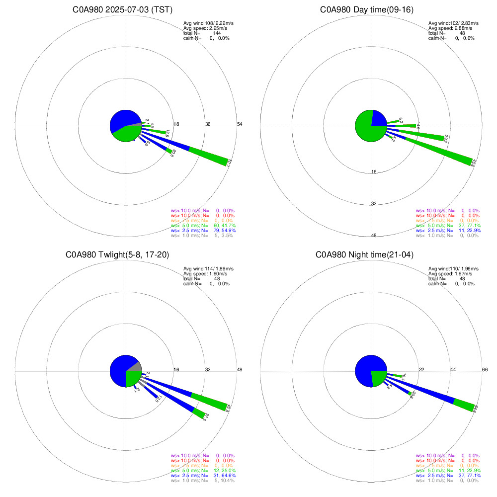 臺北社子 風花圖 (風向36方位頻率分布圖,%)