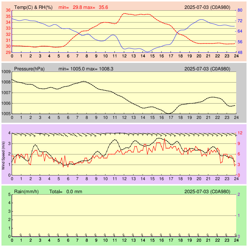 臺北社子 溫溼、氣壓、風速(m/s)、時雨量