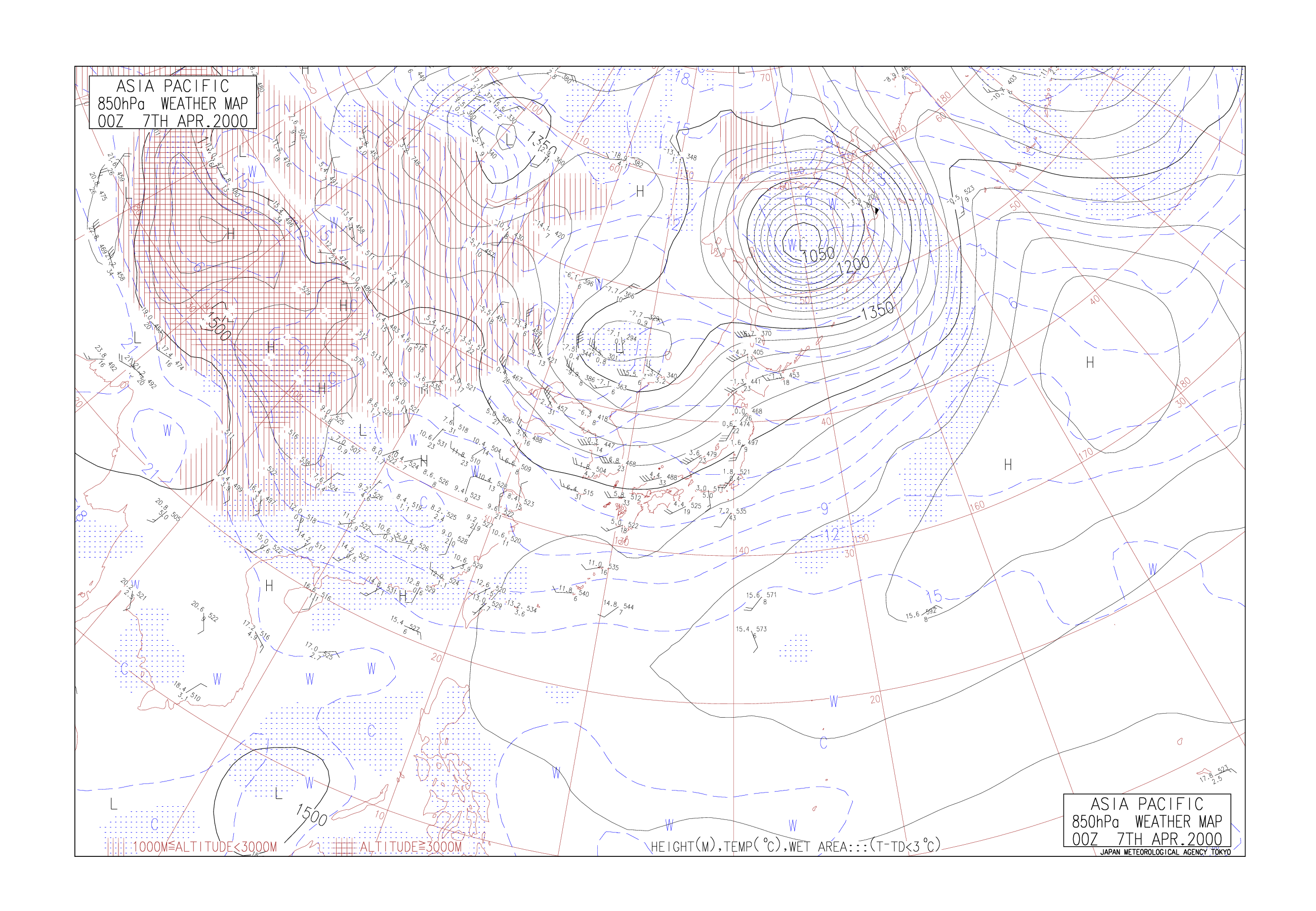 2000/04/07 00z asu850 高空圖