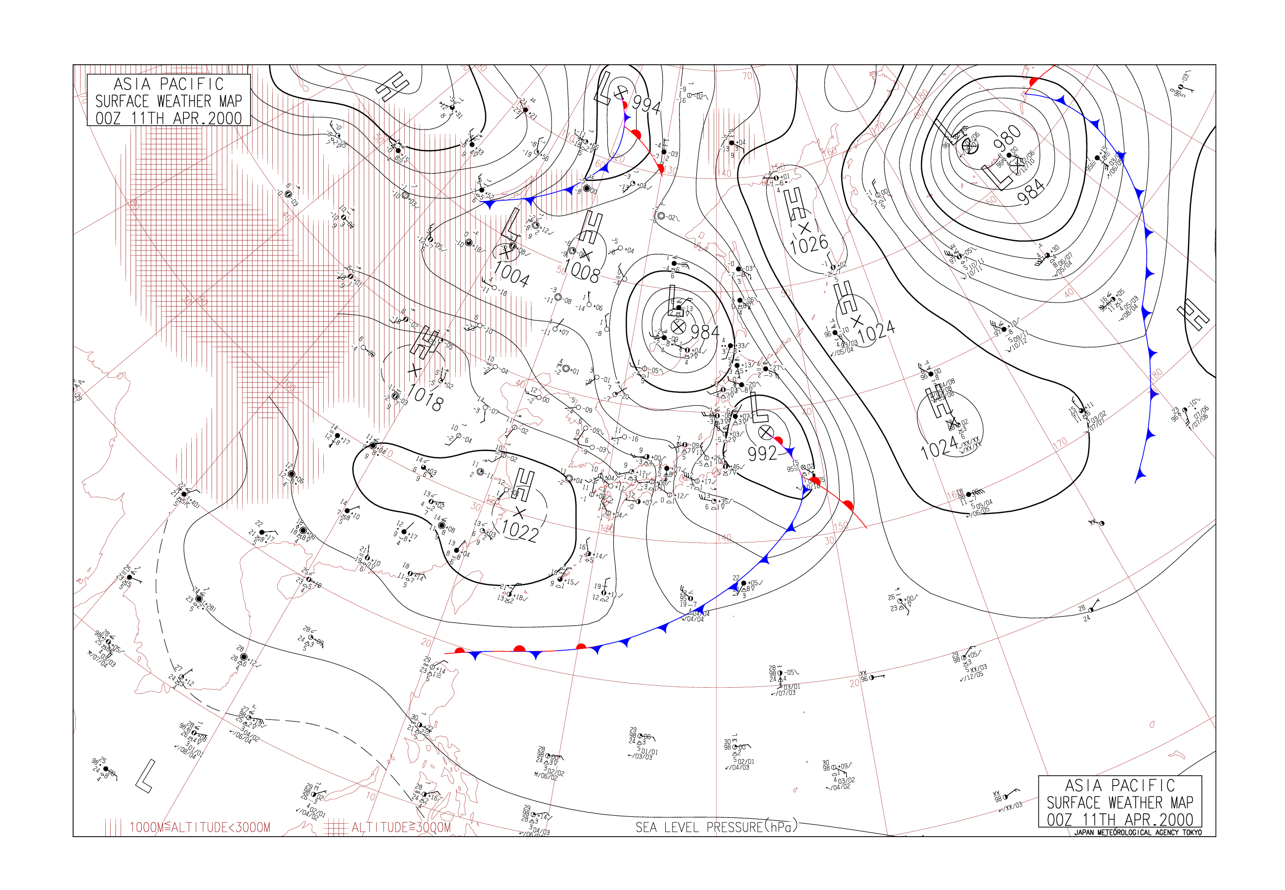 2000/04/11 00z assfc 天氣圖