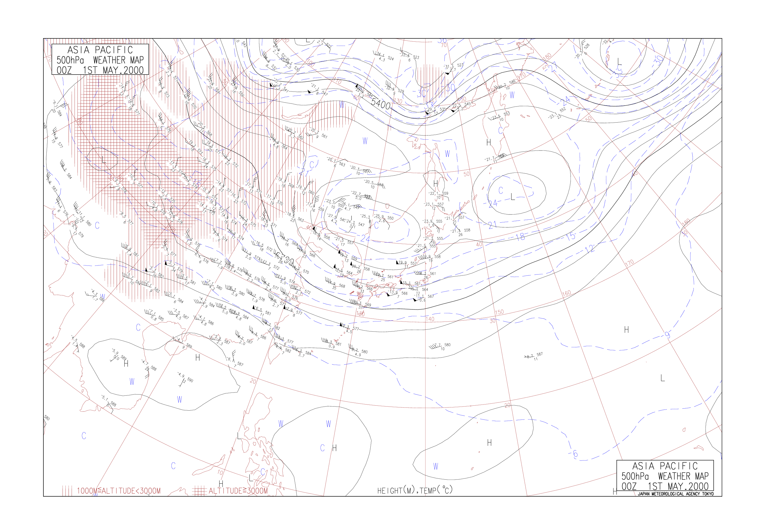 2000/05/01 00z asu500 高空圖