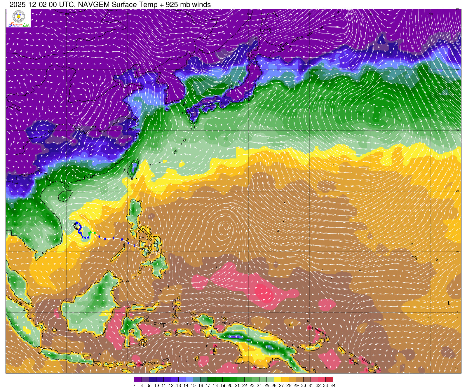 2025/12/02 00z sfctemp 地/海面溫度+925風場