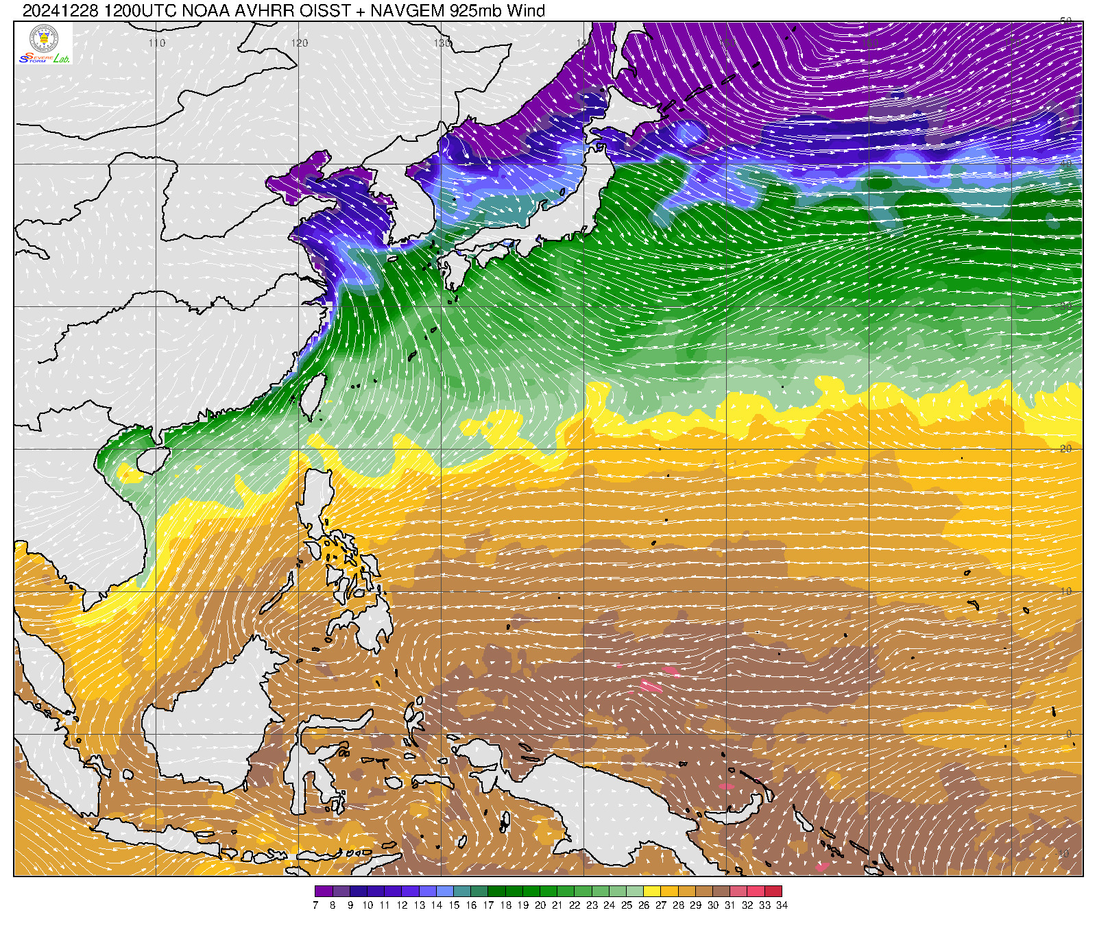 2024/12/28 12Z OISST海溫+925mb風場